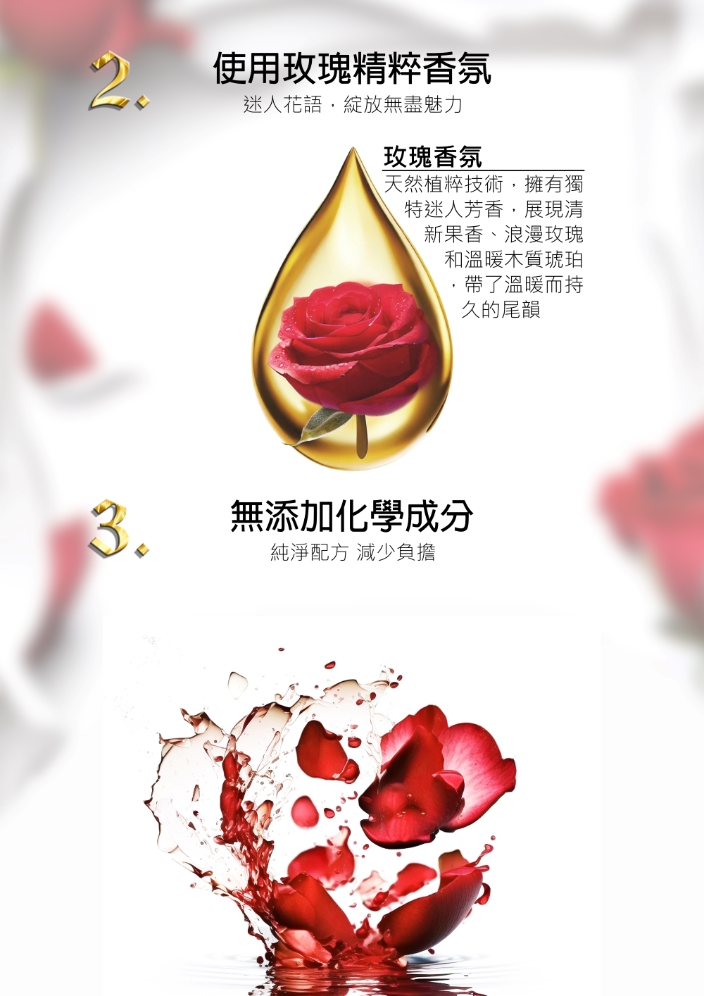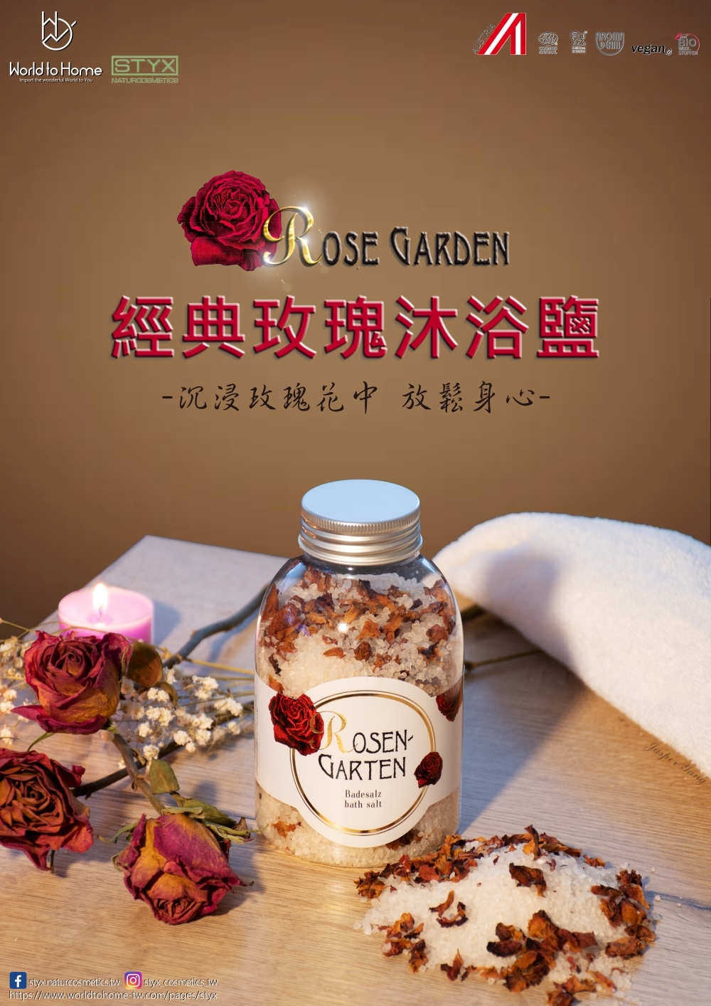 ✦大馬士革玫瑰:使用產自保加利亞的大馬士革玫瑰,其散發出的怡人花香在泡澡時圍繞著您,消除您一天的疲憊,舒緩身心。