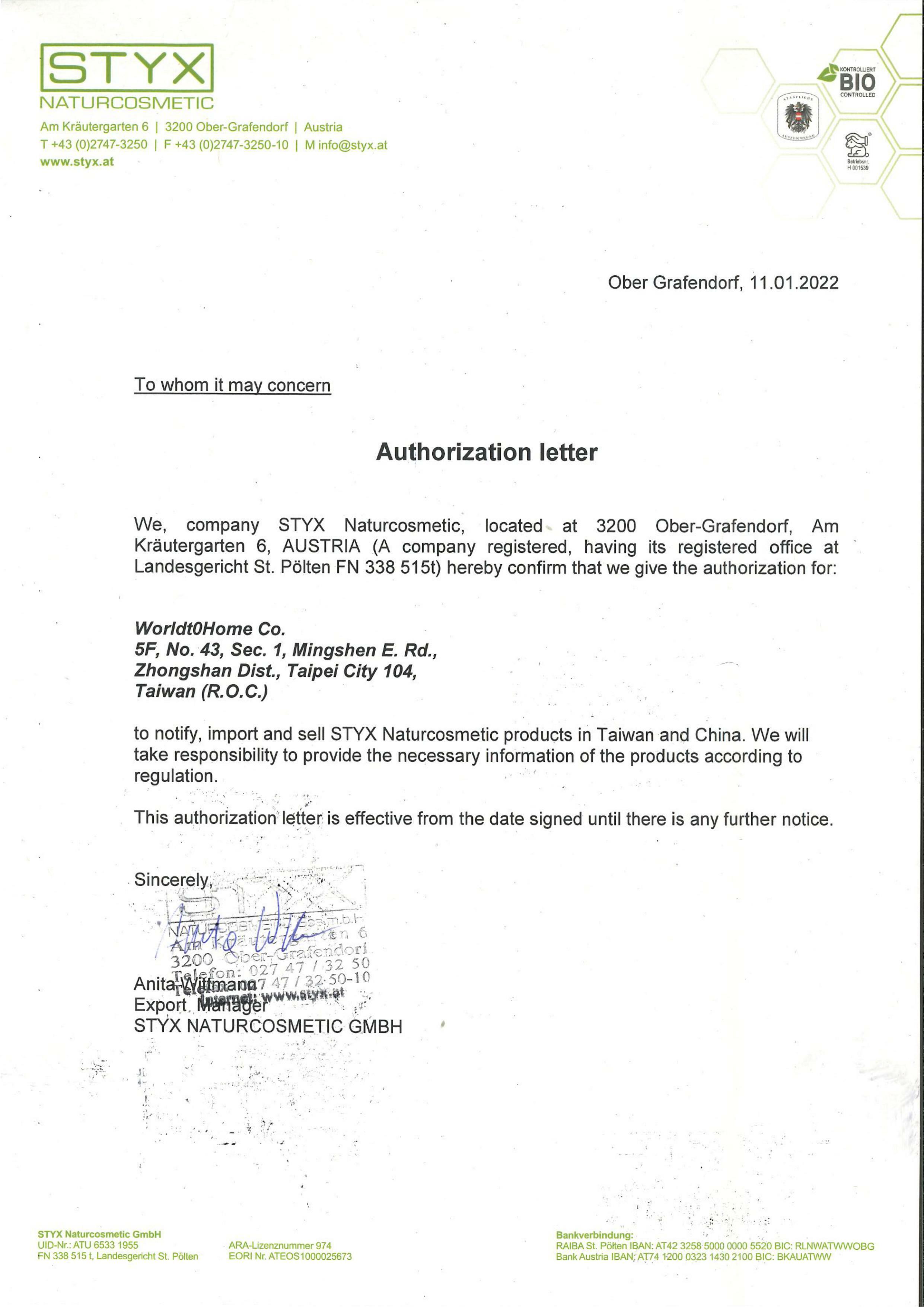 奧地利原廠STYX正式授權World to Home CO., LTD(本公司)作為台灣與大陸正版銷售權。